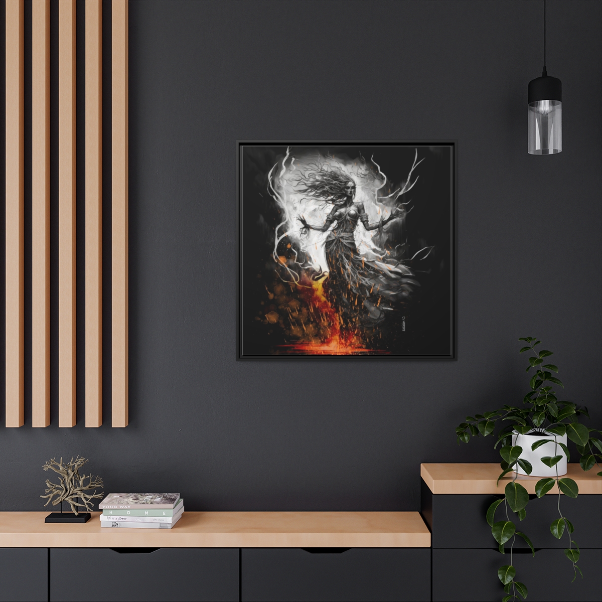 Chaque impression est présentée dans un cadre en bois de pin noir, ce qui lui confère un aspect élégant et magnifique dans n’importe quel intérieur. Votre illustration sera imprimée sur une toile en coton-polyester avec un revêtement spécial qui garantit que vos motifs resteront éclatants pendant des années. Un excellent produit pour les personnes soucieuses de l’environnement – elle est fabriquée à partir de matériaux provenant de sources durables (certifiés par le Forest Stewardship Council). Le matériel de suspension en dents de scie est déjà fixé.