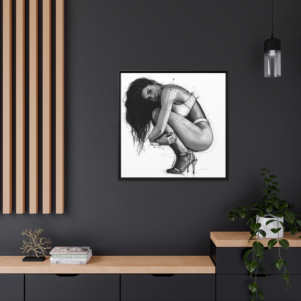 Chaque impression est présentée dans un cadre en bois de pin noir, ce qui lui confère un aspect élégant et magnifique dans n’importe quel intérieur. Votre illustration sera imprimée sur une toile en coton-polyester avec un revêtement spécial qui garantit que vos motifs resteront éclatants pendant des années. Un excellent produit pour les personnes soucieuses de l’environnement – elle est fabriquée à partir de matériaux provenant de sources durables (certifiés par le Forest Stewardship Council). Le matériel de suspension en dents de scie est déjà fixé.