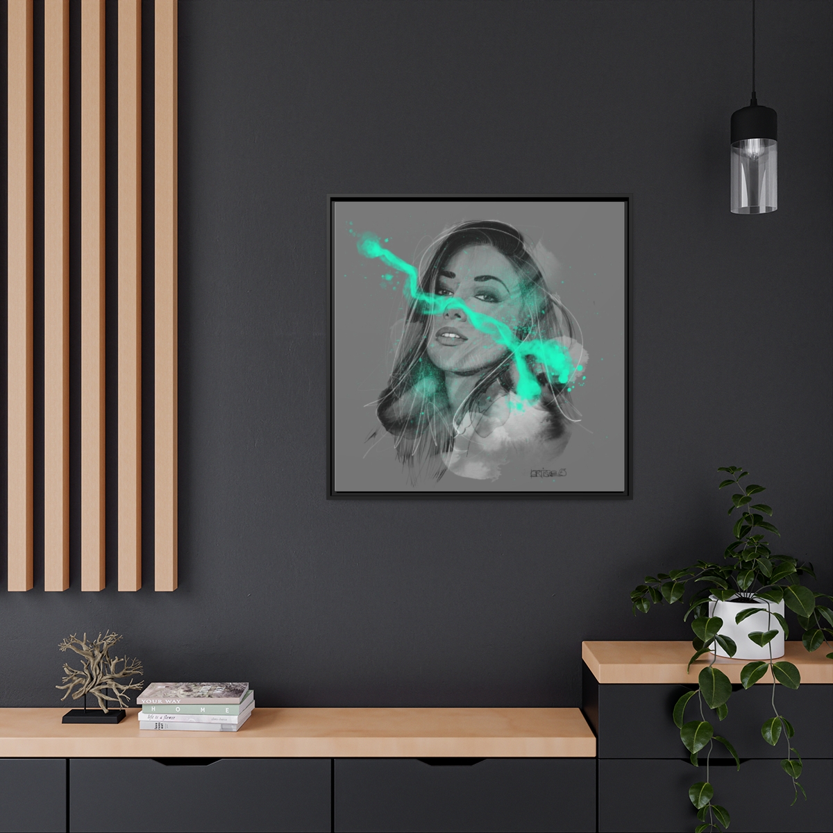 Chaque impression est présentée dans un cadre en bois de pin noir, ce qui lui confère un aspect élégant et magnifique dans n’importe quel intérieur. Votre illustration sera imprimée sur une toile en coton-polyester avec un revêtement spécial qui garantit que vos motifs resteront éclatants pendant des années. Un excellent produit pour les personnes soucieuses de l’environnement – elle est fabriquée à partir de matériaux provenant de sources durables (certifiés par le Forest Stewardship Council). Le matériel de suspension en dents de scie est déjà fixé.
