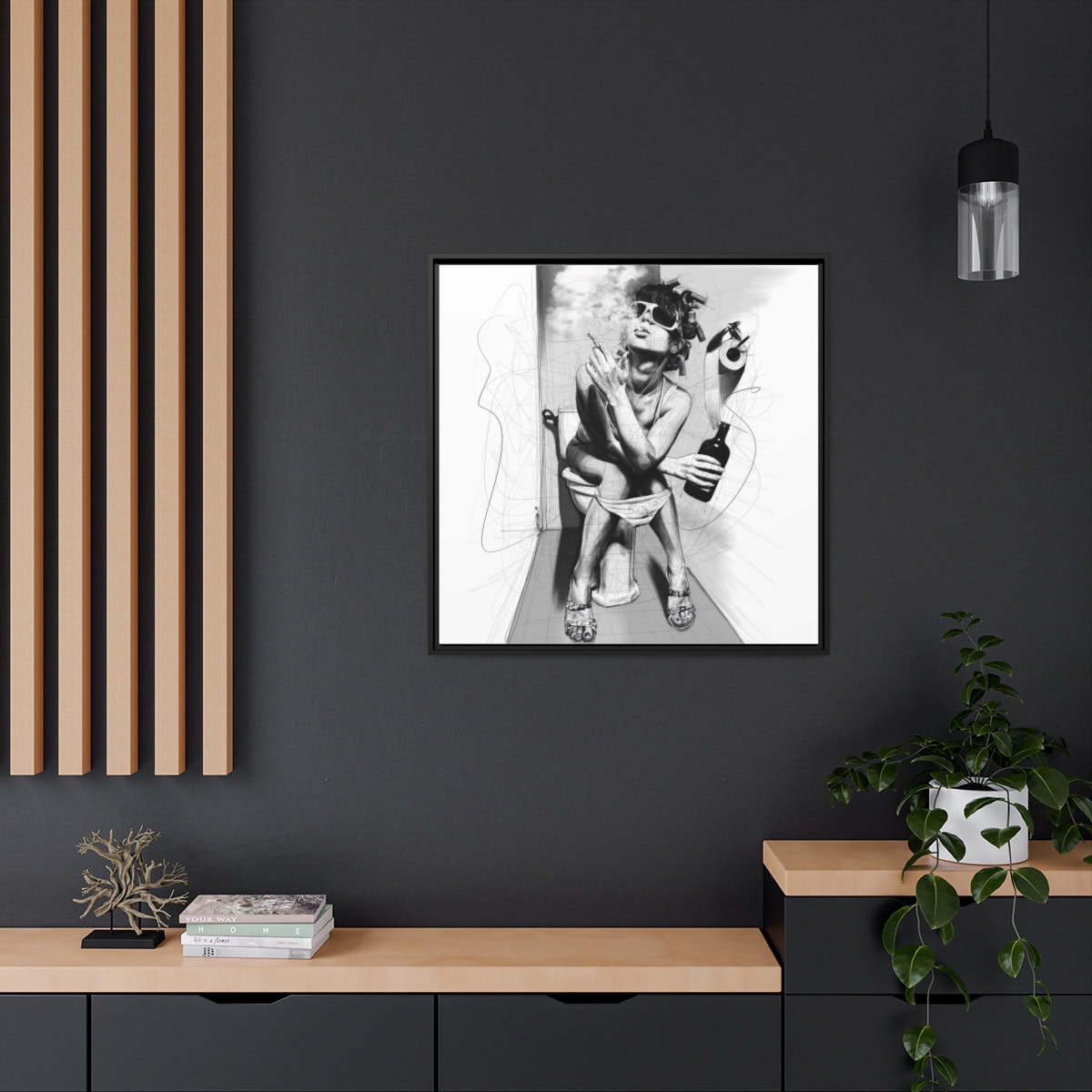 Chaque impression est présentée dans un cadre en bois de pin noir, ce qui lui confère un aspect élégant et magnifique dans n’importe quel intérieur. Votre illustration sera imprimée sur une toile en coton-polyester avec un revêtement spécial qui garantit que vos motifs resteront éclatants pendant des années. Un excellent produit pour les personnes soucieuses de l’environnement – elle est fabriquée à partir de matériaux provenant de sources durables (certifiés par le Forest Stewardship Council). Le matériel de suspension en dents de scie est déjà fixé.