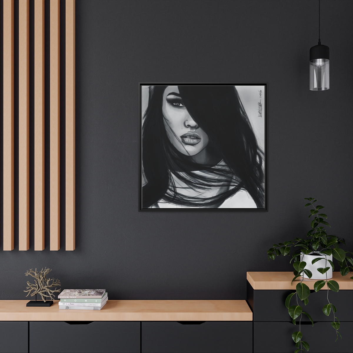 Chaque impression est présentée dans un cadre en bois de pin noir, ce qui lui confère un aspect élégant et magnifique dans n’importe quel intérieur. Votre illustration sera imprimée sur une toile en coton-polyester avec un revêtement spécial qui garantit que vos motifs resteront éclatants pendant des années. Un excellent produit pour les personnes soucieuses de l’environnement – elle est fabriquée à partir de matériaux provenant de sources durables (certifiés par le Forest Stewardship Council). Le matériel de suspension en dents de scie est déjà fixé.