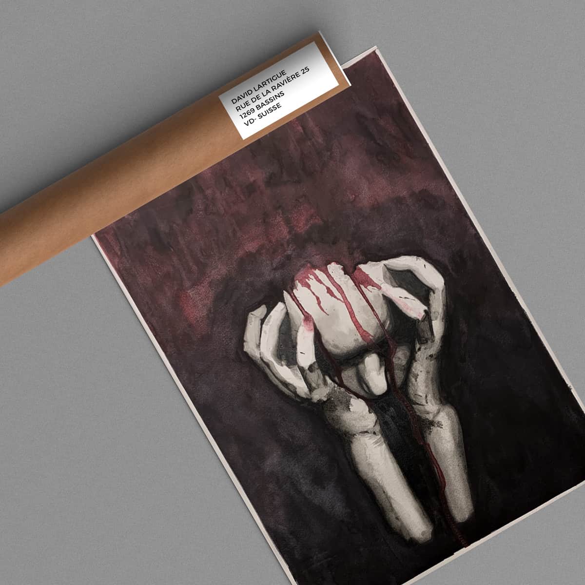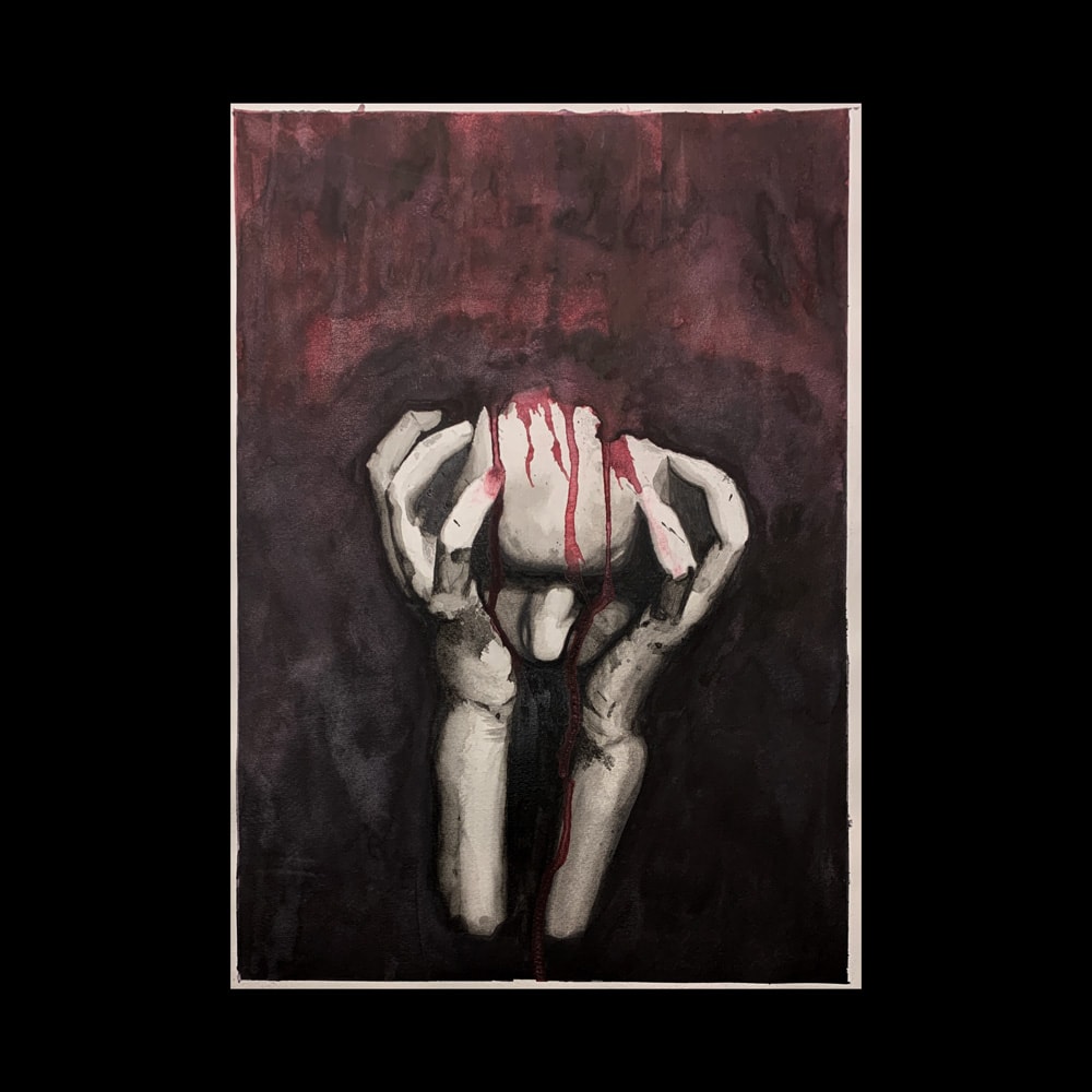 Aquarelle artisanale « Sors de ma tête ».