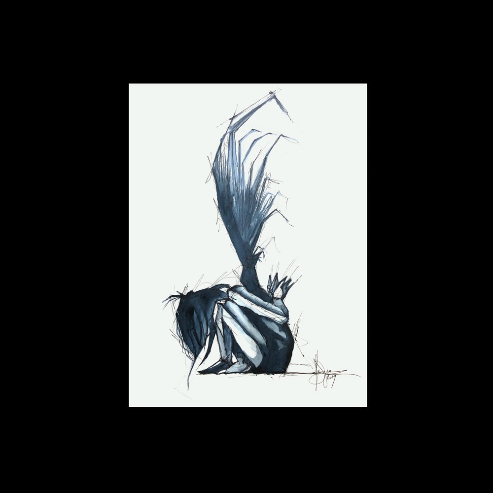 Aquarelle artisanale « L’ange prisonnier » The prisoner angel.